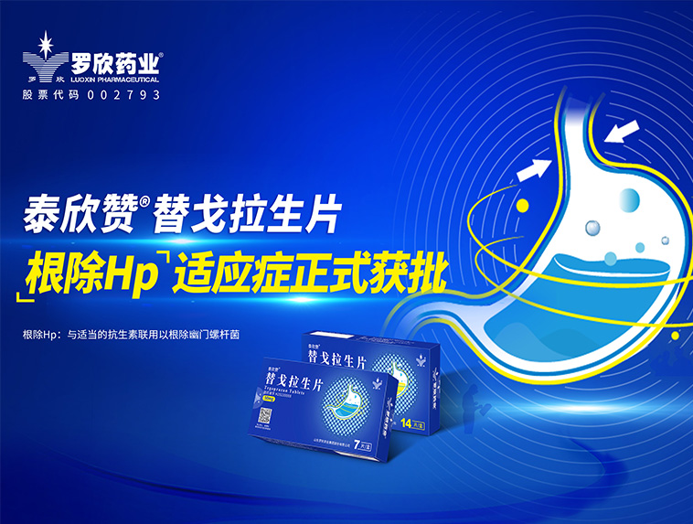 羅欣藥業(yè)創(chuàng)新藥替戈拉生片(商品名:泰欣贊?)新適應(yīng)癥“與適當?shù)目股芈?lián)用以根除幽門螺桿菌”獲批上市